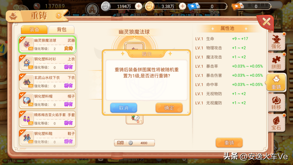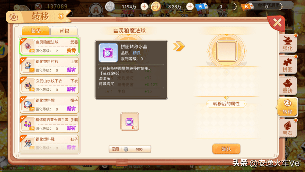还有就是武器的强化,现阶段装备更换还是比较快的,不建议大家过高地去强化武器,因为分解之后返还的强化石会大打折扣,提升战力的主要方式还是从宝石和拼图上入手,注意拼图如果重置会直接回归一级,所以升级过拼图属性后不要随意重置。他不会返还你任何材料,更换装备之后可以在商城购买拼图转移水晶来转移属性。
