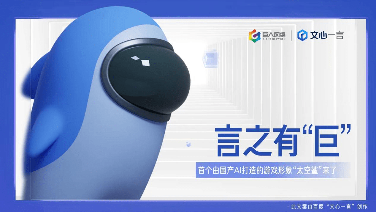 基于百度“文心一言”的技术支持,双方在巨人网络旗下《太空行动》中推出第一个由国产AI打造的手游形象“太空鲨”。目前,百度“涂鸦一格”微信小程序已启动AI形象创作活动,由该形象衍生的身份套装将在游戏内上线。
