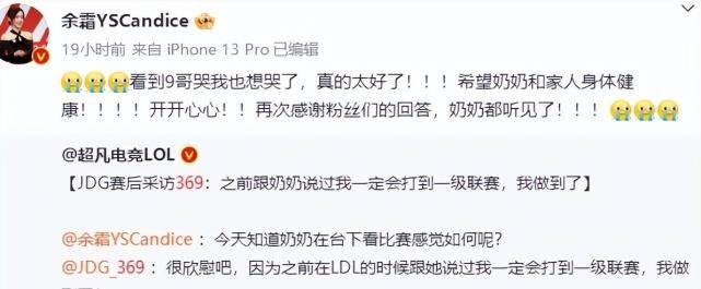 在赛后采访环节,这位JDG369战队选手的真情流露,让人看到了他与外婆之间的深厚情谊。原来,369从小就由奶奶抚养长大,两人的关系非常好。在赛后采访中,他说:“我很开心,因为我之前在LDL告诉过他,我一定会在第一联赛踢球,我做到了!”这时,369哭红了眼睛,现场响起了雷鸣般的掌声。而爷爷369也哭了,为孙子今天的成就感到骄傲。