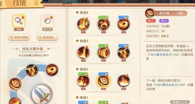 外圈技能:魔法泡泡、风刃术(击退)、流星火雨(击退)、怒气激爆