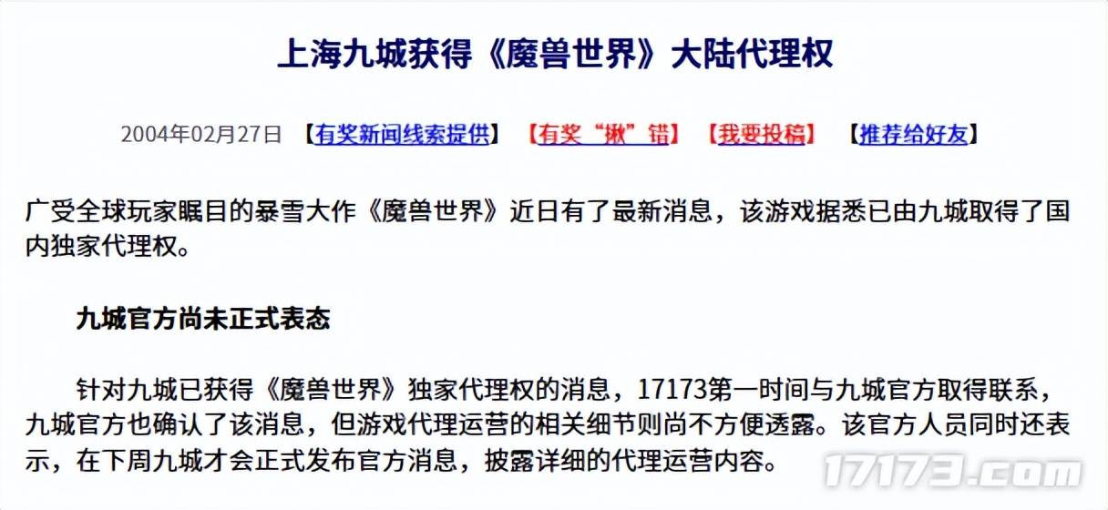 作为一款舶来品游戏,说到魔兽世界,那必然得提及它的领路人“第九城市”(以下简称九城)。