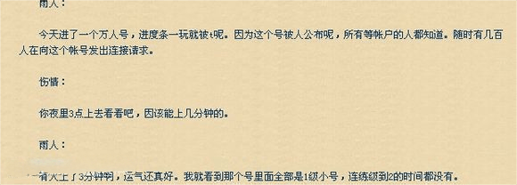 有趣的是,有一名玩家把宝贵的测试账号给公布到网络上,这个账号顿时变成了个“万人号”,几乎没有人能够顺利体验游戏超过5分钟,就会被其他人给顶了。