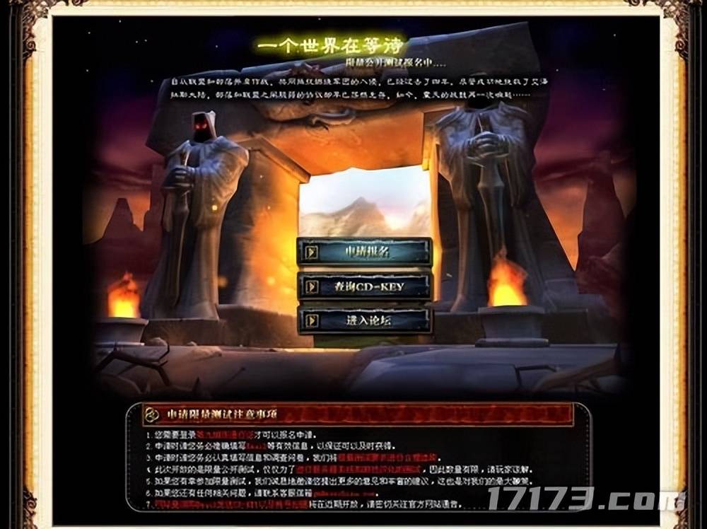 2004年11月8日,美服《魔兽世界》的公测,九城担心国内玩家流失到美服,于是在国内开启了一次中国区限量公开测试报名,打出“一个世界在等待”的宣传口号。