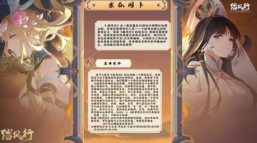 如果说Coser的表演是直播中最惊艳的环节,那么AI占卜便是最“玄学”的环节。策划清风老祖、运营秦师兄与主持人玉儿联手施展“祈愿大法”,以弹幕传音收集玩家心愿,最终由“天工智灵”推演出公测良辰:2025年5月16日!这种选定公测日期的法子在业内算得上是首创了,真得佩服下《踏风行》官方的脑洞。