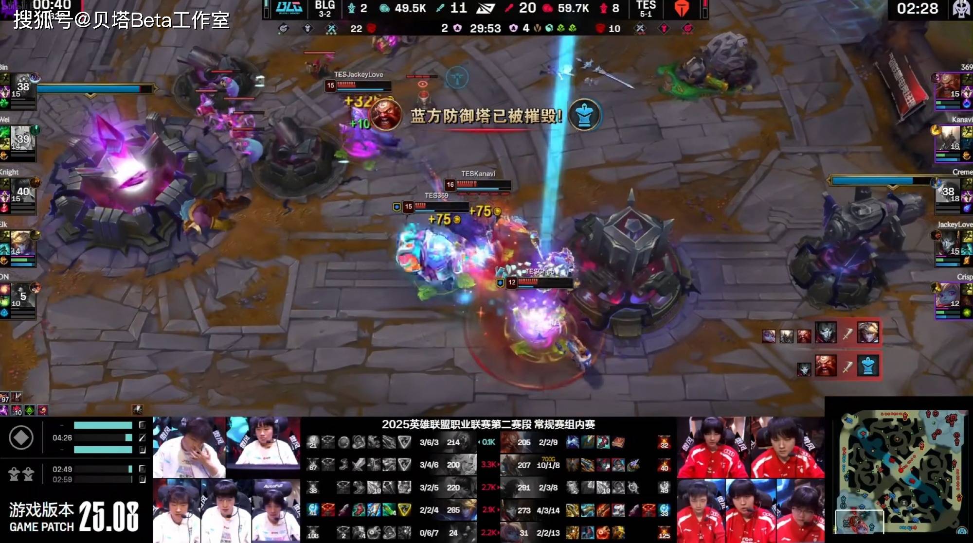 LPL第二赛段TES和BLG登峰组的BO3,双方大战3局之后,TES以2-1的战绩击败BLG,送给BLG第二赛段第3败!TES则是拿下第6胜。