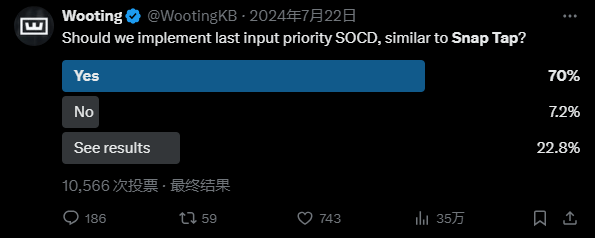 键盘厂商Wooting也迅速发起投票,询问用户对加入该功能的意见