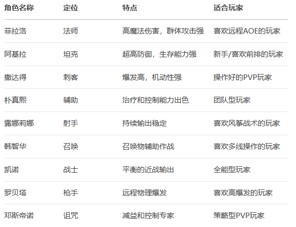 新手推荐:阿基拉或凯诺,生存能力较强容易上手