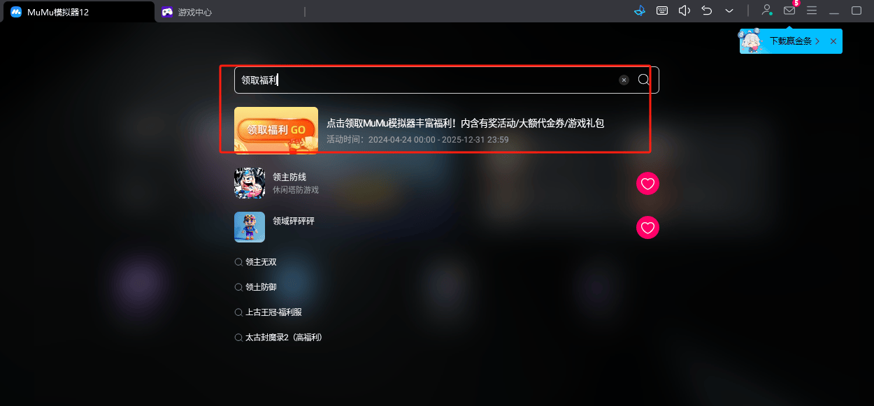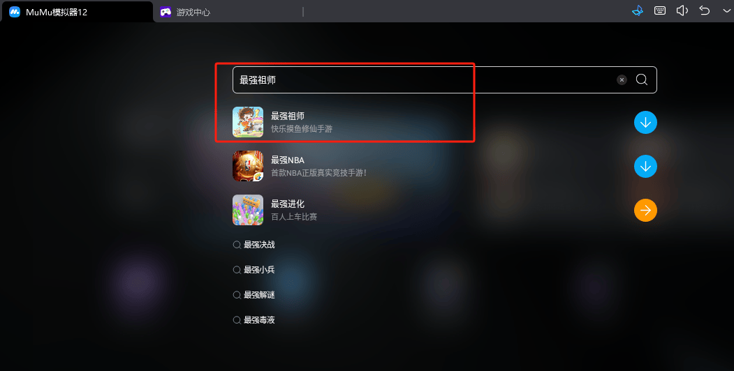 安装好成功后,启动模拟器客户端,在顶部搜索框输入“最强祖师”,找到游戏后点下载即可完成。
