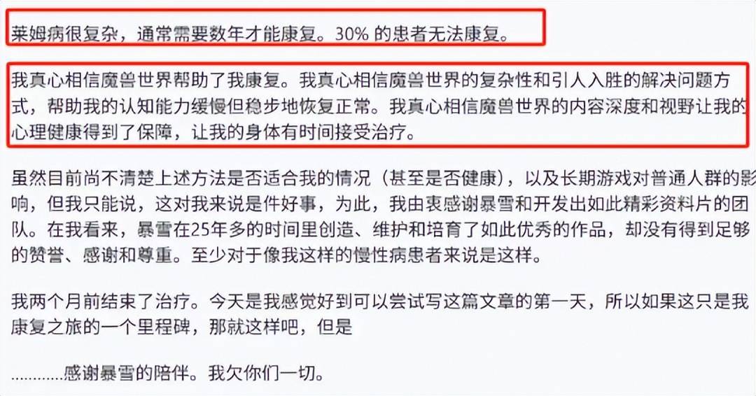 对于魔兽玩家来说,每天下班回家刷刷外观,打打大秘境,确实有助于缓解身心疲劳,但你听过玩魔兽还能治疗各种慢性疾病的吗?最近,国外论坛一则说打魔兽治好莱姆病的神人帖子,就在网上引发了巨大的争论。