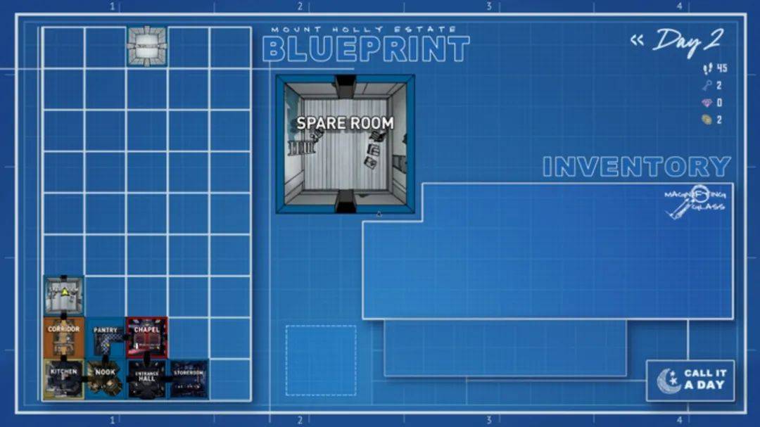 每个房间除了蓝图界面的基础功能外,还有着一套完整的3D场景,玩家在选择房间后能以第一视角去探索独属于这个房间的专属场景,从中搜刮些小道具,解开几道逻辑谜题,或是翻出各类牵扯到剧情走向的线索。