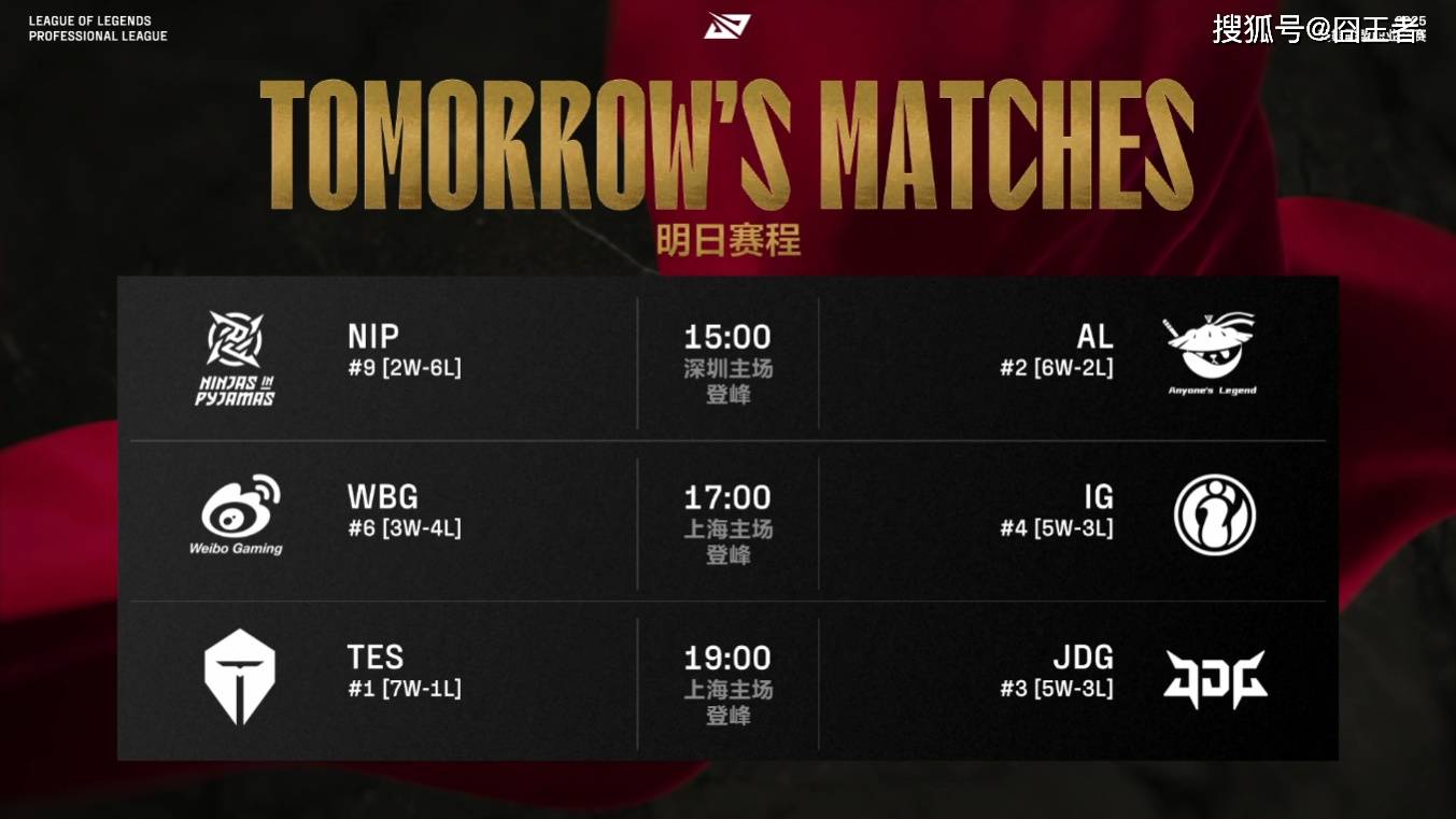 4月27日的比赛,由NIP对阵AL,WBG大战IG,以及焦点之战TES对阵JDG,三场比赛组成。在先结束的两场比赛中,AL零封NIP,WBG三局战胜IG;那么TES和JDG,究竟谁更厉害,就让赛场来告诉我们吧。