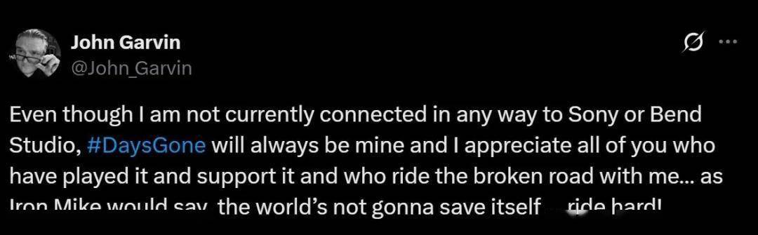 游戏编剧John Garvin也关注到当前评分,公开感谢粉丝对其作品的支持。