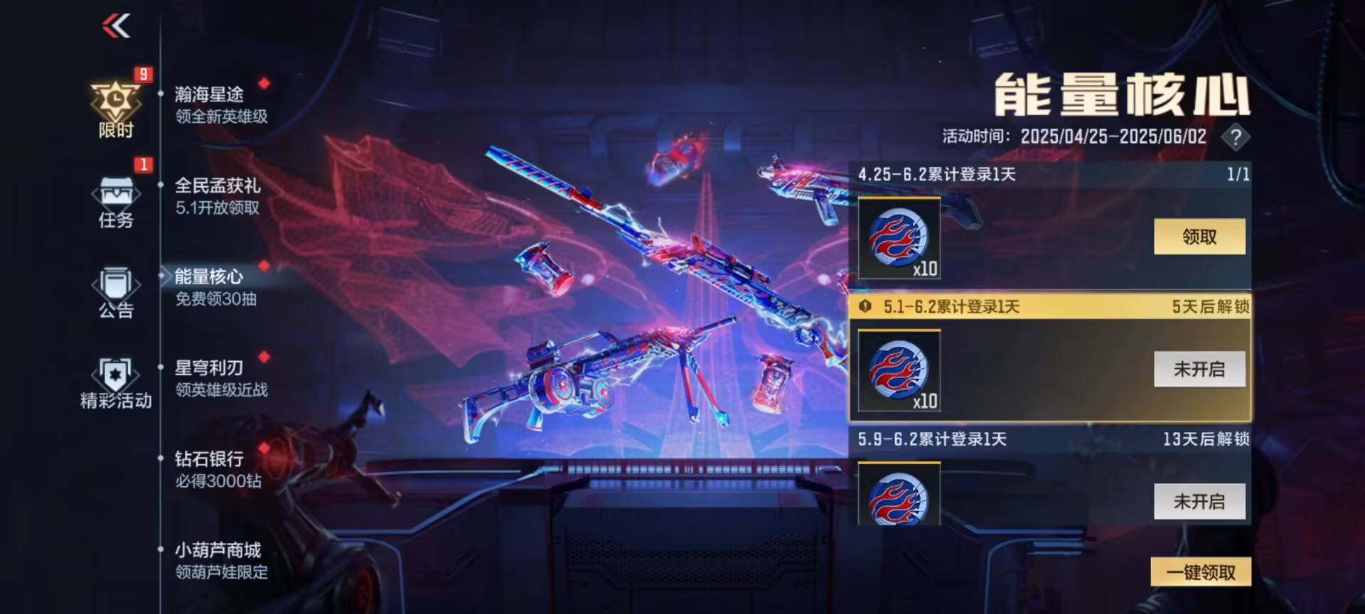 随着能量核心钻石夺宝的上线,能量核心送抽活动也同步上线。在规定时间登录游戏即可直接领取能量核心抽奖币,大家一定要看清楚登录时间,不要错过哦!你是不是那个一发入魂的欧皇呢?