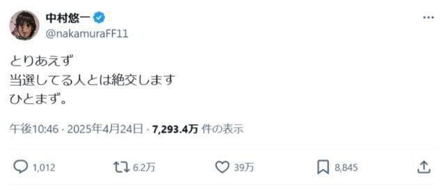 ·中村悠一在任天堂公布结果当天公开威胁要和抽中的好友绝交,引发网友热议。