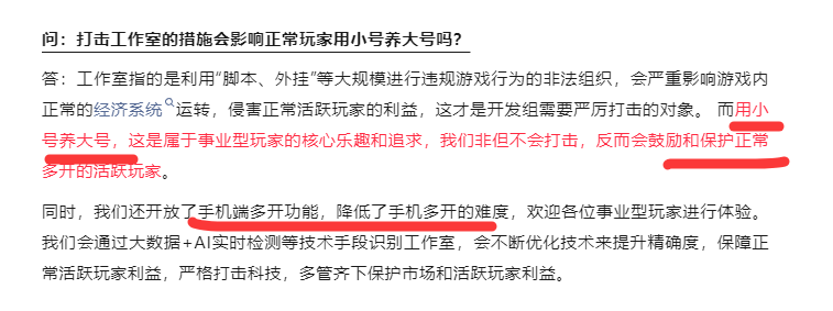 今天叶子猪把这个截图发群里,有玩家表示“我不信”,他们认为同一IP多开不可能不扣,从策划答疑来看,会用大数据+AI实时监测,识别多开脚本外挂的工作室,避免误伤到正常多开五开玩家。