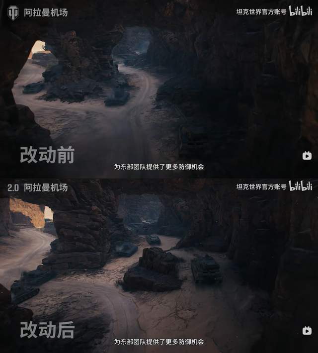 除了州际公路外,诺曼底和埃勒斯堡也迎来了全面重做;北欧峡湾进行了外线调整,阿拉曼机场进行了小幅变动。这些调整都改到了点上,极大的优化了车长们的游戏体验。像阿拉曼机场就给东部队伍新增了一个小坡,可以骑上去和对面对打。