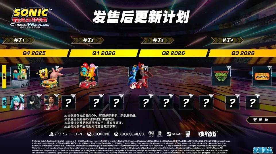 其实在前作《索尼克全明星赛车》系列中,我们就做过类似的尝试,当时玩家们的反响非常好。所以这次在《交叉世界》里,我们也延续了这一方向。这次我们计划在游戏发售后,每个月进行一次内容更新,包括新增一些免费角色。