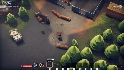 游戏虽是俯视角,玩家理应能够开天眼。但《鸭科夫》敌人常以“匿踪-闪现”的形式突然在我面前,在森林、掩体等障碍物助攻下,敌人踪迹难以时刻追踪到。很多时候,我需要听声辨位,根据敌人最后消失的位置,推测敌人下次闪现的地方。