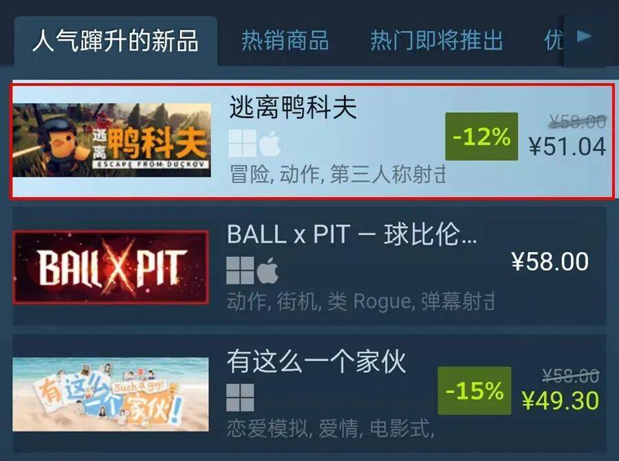 今(16)日,目前最萌的搜打撤游戏《逃离鸭科夫》(以下简称鸭科夫)已正式发售。截止发稿前,《鸭科夫》跻身Steam新品榜国区第一名,全球第六名,迎来一个不错开局。
