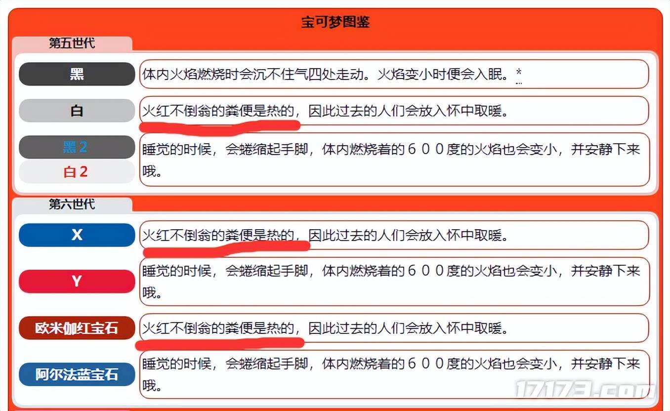 而爆焰龟兽的图鉴中则描述其“粪便会爆炸,十分危险”。