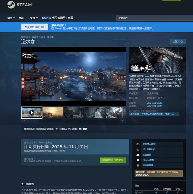 最近游戏圈又炸锅了!《逆水寒》手游官宣11月7日登陆Steam,PC版同步上架的消息刚放出,玩家群里直接掀起跨平台狂潮。别以为这是突然爆的瓜,早在六月人家就放话要上Steam,这波是憋了一段时间的大招,终于要亮剑了!