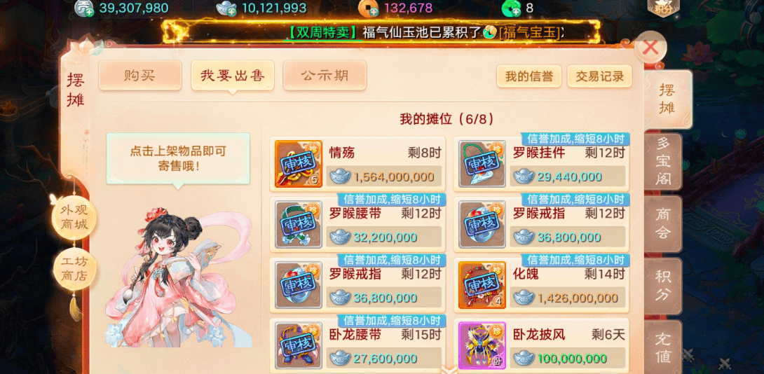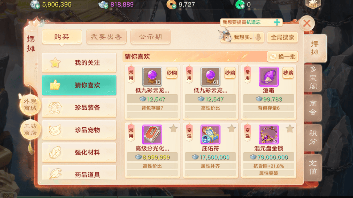 再一个是水陆大会,积分可以兑换神兽丹、九彩等材料倒卖,在新区也要学会低价收购热门材料囤货倒卖,等市场需求上升后再抛售,这样赚钱来得快。