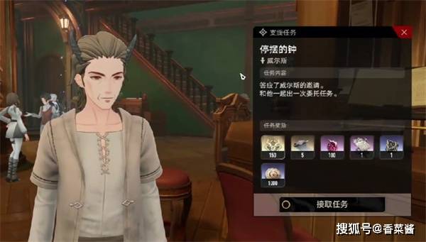 与威尔斯对话后,打开支线任务面板。点击接取任务,开启任务流程。