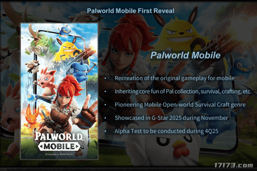 《幻兽帕鲁》手机版将参展 2025 年 11 月举办的 G-STAR 游戏展,并提供现场试玩机会。同时游戏也将于2025 年第四季度(10-12 月)在海外开启 Alpha 测试。