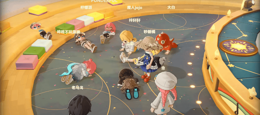 不过和元梦之星等游戏比起来,米哈游目前在MMO大厅上的设计,还很保守。除非是在特定的咖啡厅和聊天区域,或者互相加上好友,否则你是看不到陌生人的聊天文字。包括你想认识人,也必须先主动做一个社交动作,然后才能开启公屏聊天。