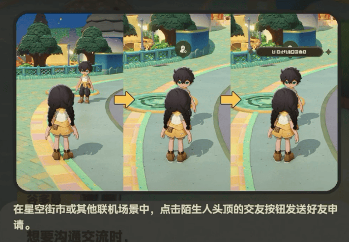 然后是社交体系的第二层,有边界的好友社交。征得对方同意后,就能去对方的星球拜访,就像是《原神》里让好友来自己的尘歌壶。
