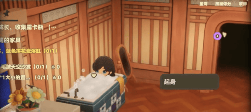 比如把地图上的树都收起来,挪到一起做个果园。我中间才两天没玩,别人家就都变成水族馆了。而在微观上,米也做得很细。游戏里的微波炉、空调都能打开,你甚至还可以泡澡。