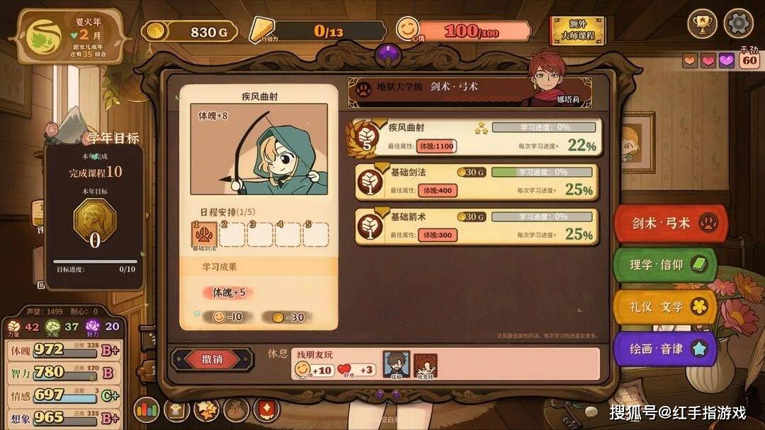 课程优先级:骑士路线练剑术 / 弓术,学者路线攻理学 / 学术,艺术路线侧重礼仪 / 音律,定向学习更高效。