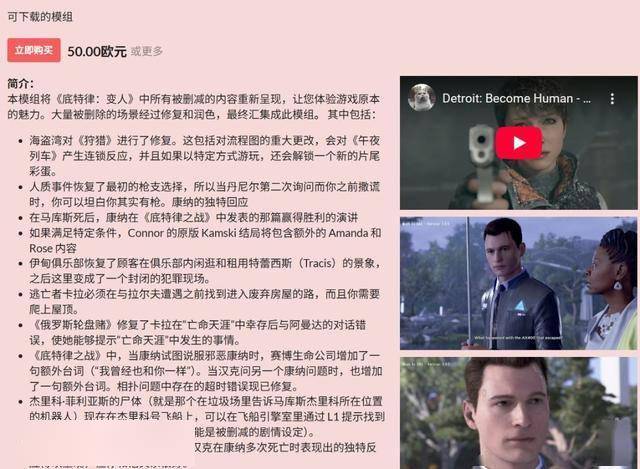 近期,有国外玩家为近几年大火的互动剧情游戏《底特律:变人》发布了一款全局mod,该mod恢复了游戏大量删减内容。据作者所说,所有恢复的对话和字幕均已完成本地化。