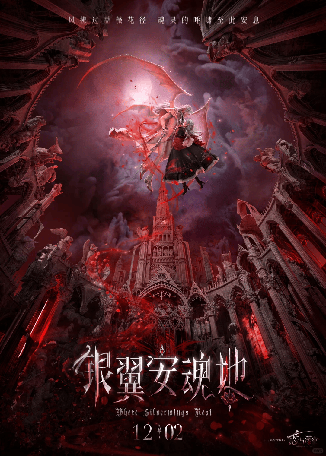 这一次,秦彻以吸血的银翼恶魔形象登场,鲜红蔷薇与复古音乐的搭配,强化了角色的危险气质与诱惑张力。