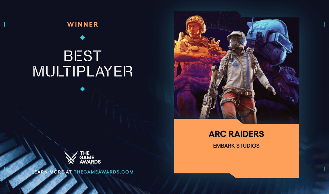 入围的有《双影奇境》、《PEAK》、《艾尔登法环 黑夜君临》、《战地风云 6》、《Arc Raiders》。