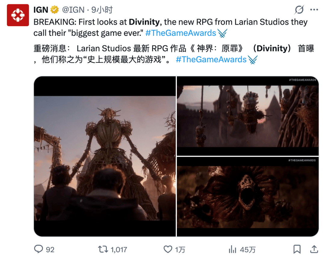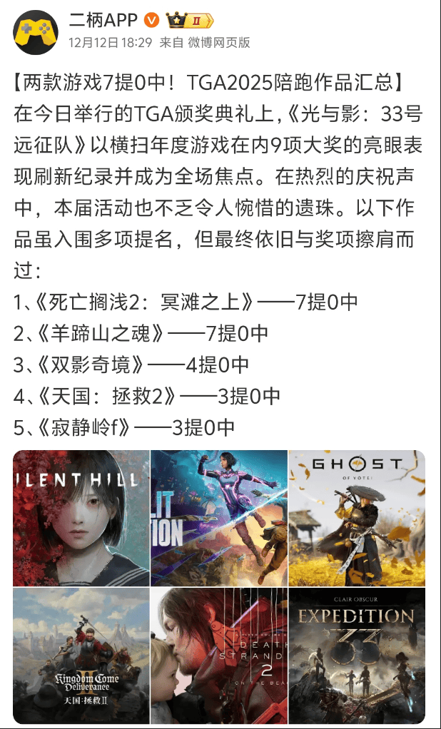 说白了,还是因为它在 TGA 的成绩和大家的预期不符,不是太差了,而是太好了。