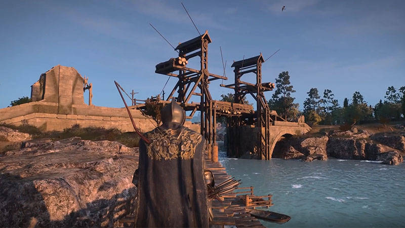 在前往哈尔玛尔群岛的必经之路上,一座宏伟的大型吊桥横跨海峡。玩家可与之交互,通过控制机械装置使桥面升起或下降,从而打通或阻断通往新区域的路径。这一设计不仅展现了占据群岛的法尔斯加尔人的实力还增添了互动趣味,为玩家走向这个新世界带来了些许仪式感。