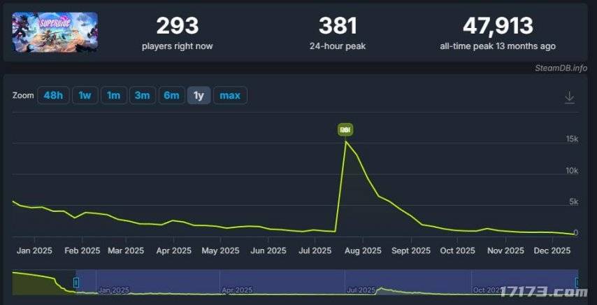 游戏在线人数巅峰只有4.7万人,其他大部分时间在线人数在1000人左右,最低时不到300人。