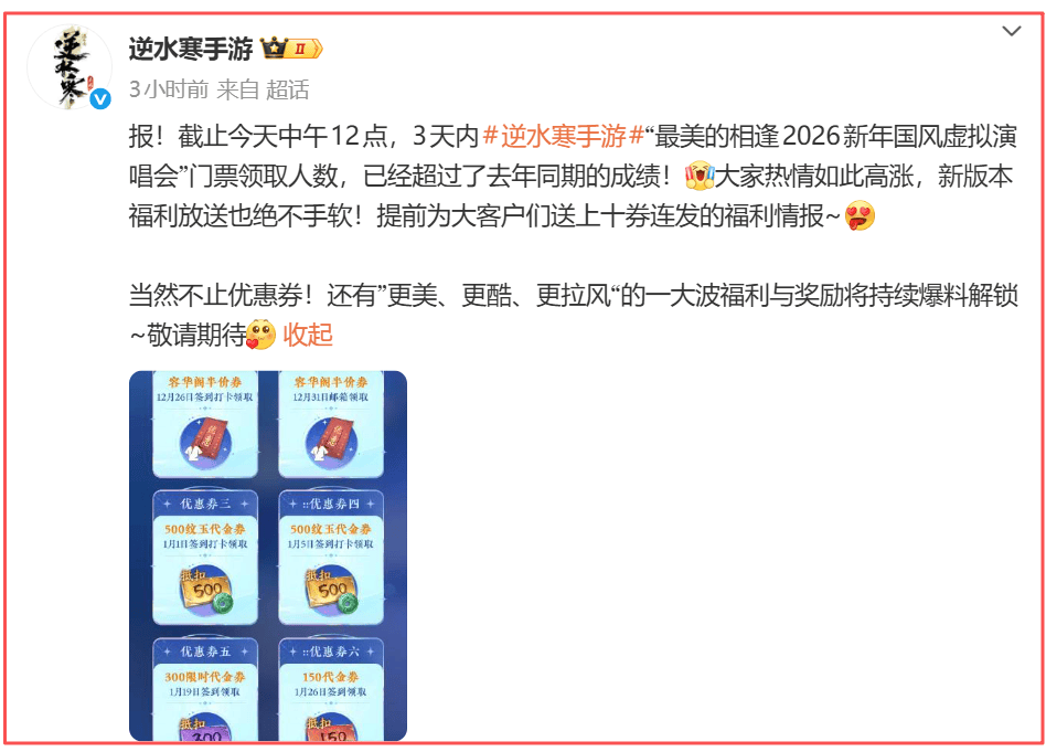 因此,当“最美的相逢”2026新年国风虚拟演唱会公布后,玩家们积极报名踊跃参与,也就不足为奇了。