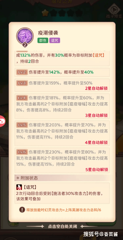 瘟疫之源:全体概率诅咒,已方加攻,零氪升5星