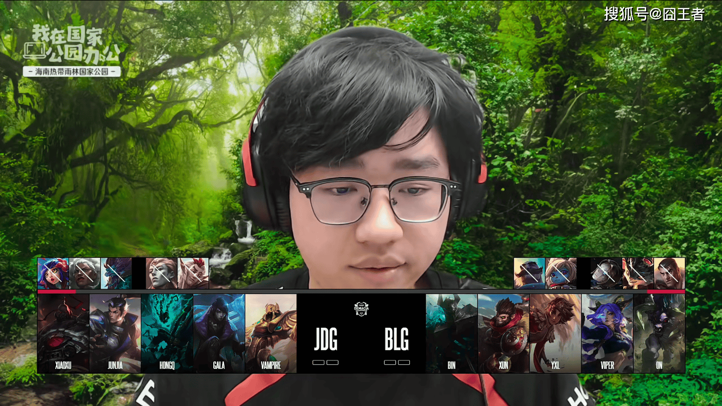 第一局比赛,JDG蓝色方,禁用:妮蔻;狼母;巨魔;亚恒;洛,选用:Xiaoxu塞恩;Junjia赵信;HongQ沙皇;GALA飞六四;Vampire锤石;BLG红色方,禁用:杰斯;兰博;发条;波比;布隆,选用:Bin铁男;Xun猴子;Yxl岩雀;Viper芸阿娜;ON牛头