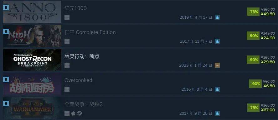 更夸张的是,一些问世才几个月的新作折扣力度也相当吓人。