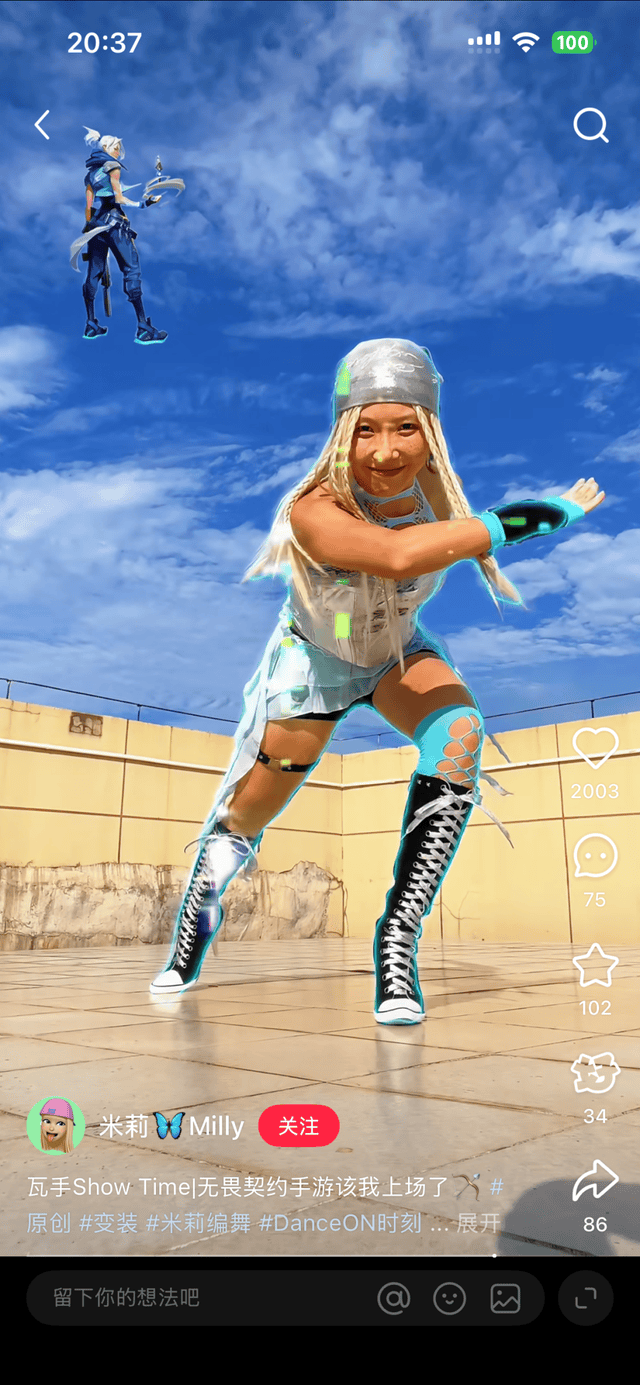 不难看出,《无畏契约手游》如今已经超越了游戏本身,成为了一种可穿戴的“时尚单品”。玩家群体借助游戏元素表达自我,将游戏中的美学穿在身上,带上街头。这种游戏元素的“现实入侵”又进一步影响了更多年轻人的审美,扩散到更广泛的文化圈层。久而久之,“瓦式美学”成为了一个极具辨识度的标签,也成为了潮流文化的一部分。