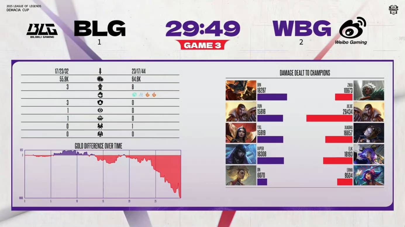 再次恭喜WBG获胜,毕竟还是赢了比赛,不过BLG粉丝也不用太悲观,K皇还没上场呢,这不是完全体的BLG,全当给Viper练手了,问题不大,反正Bin看下来,实力依旧顶尖,这就足够了。