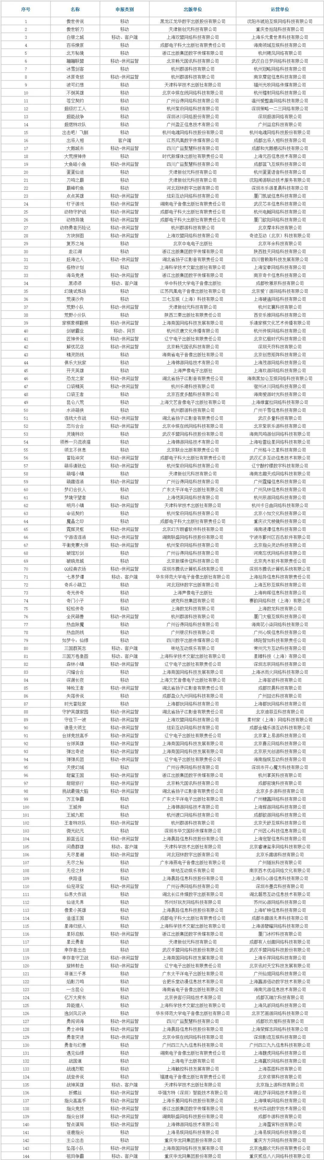 12月国产版号144款,进口版号3款。本月值得关注的包括腾讯《QQ 经典农场》手游、乐元素《白银之城》、进口游戏《波斯王子:失落的王冠》等。详细名单可在最下方查看。