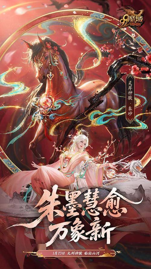 灵犀神骏·朱砂:主色调为温润的朱砂红,搭配淡墨梅花点缀,气质温婉。但描述中“笔锋扫魔孽,梅印照彻九重天”这句话,让人感觉她可能具备辅助或净化类技能,或许能在战场上发挥独特作用。
