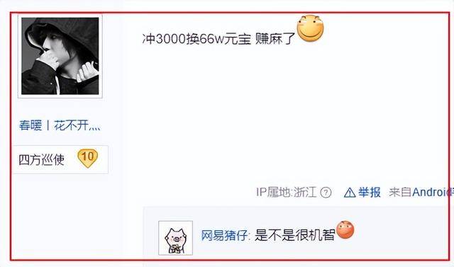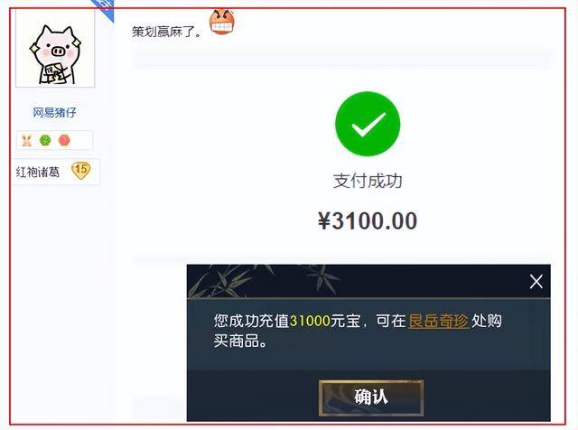 立刻就充值了3100元换算成31000元宝进了自己的账号。