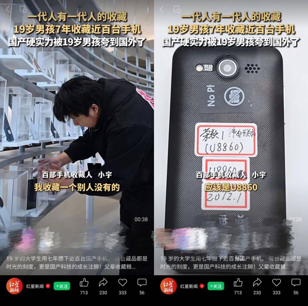 荣耀曾给一个19岁的用户办过一个展,展出了对方收藏的近百部荣耀手机,而他的第一部手机是荣耀U8860。后来,19岁的年轻人把百部手机带到了国外,展示给外国的朋友。一代人有一代人的陪伴,一代人有一代人的收藏。那是生活的痕迹,也是国产科技的成长注脚。