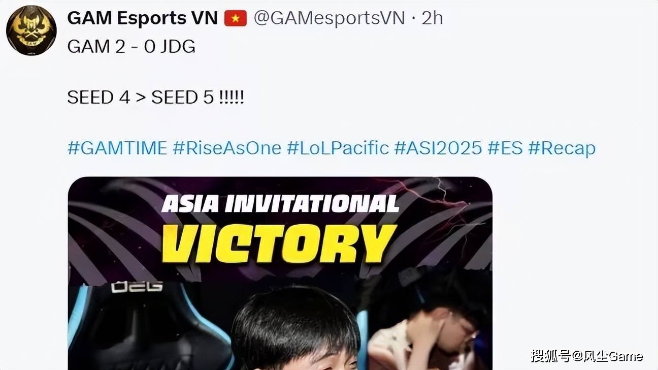 输就算了,最关键的是,京东连一个小场都没赢,比赛结束之后,GAM官方发文嘲讽:4号种子>5号种子,咱们赛区一直都是,仅次于LCK的顶级联赛,而越南在没有并入LCP之前,一直都是外卡赛区,虽然现在也是五大赛区的队伍,但越南的整体实力,跟咱们赛区是不在一个级别的。