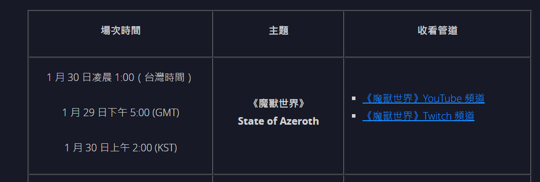 《魔兽世界》 1月30日(亚服时间凌晨1点)